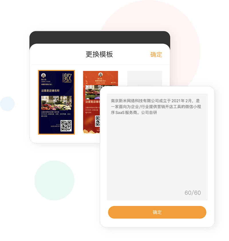 模板修改:可更换多套模版,展示更多信息。
